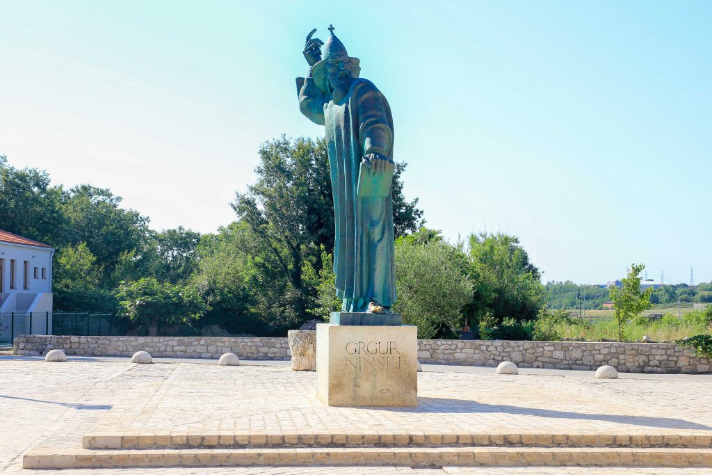 An important attraction and one of the best things to do in Nin is the imposing statue of Gregory of Nin, which is about 4 meters high. This bishop was among the most important Croatian personalities, and rubbing the toe of the bronze statue is said to bring good luck, according to a legend. Right next to it is the church of St. Anselmus with its interesting treasury and the freestanding church tower from the 12th century, towering high above the town of Nin.